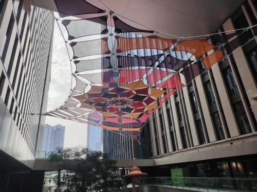 不同于传统建筑的厚重,这次前海广场天幕张拉膜项目,佛兰膜结构采用张拉式索膜结构体系,通过精准的力流设计,将膜材的高抗拉强度与钢索的刚度有效结合。整个结构由86片膜单元拼接而成,搭配三种规格的48根钢索: