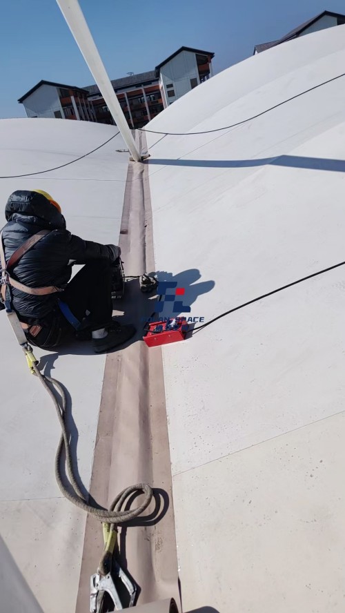 佛兰膜结构专注膜结构专项施工,全程高标准严控工序,尤其在排水系统上做到精细化落地: