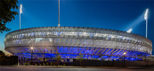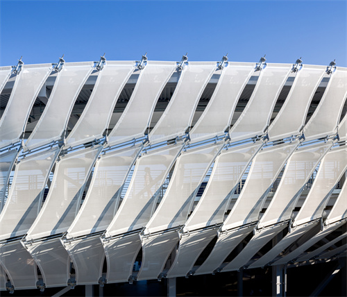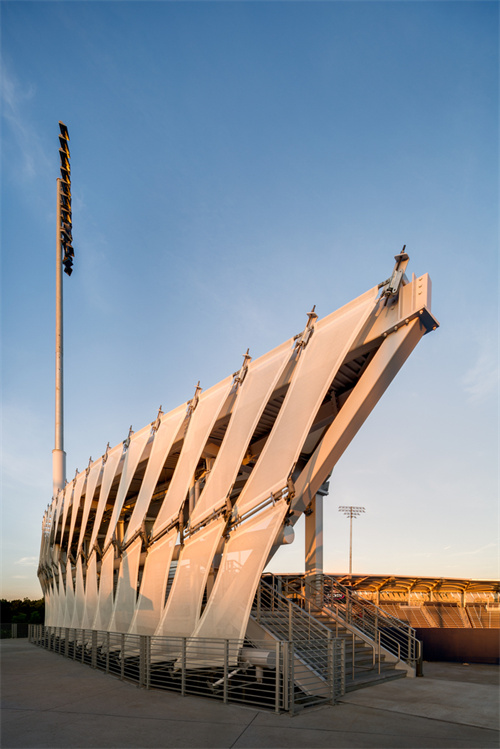 PTFE材料的半透明特性,创造出独特的视觉对话。场外的人可以瞥见场内活动的模糊光影,激发了好奇心与参与感;场内观众则能透过表皮看到公园的绿意,缓解了大型建筑的封闭感。