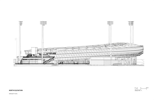 立面上树叶般的图案,让体育场自然地融入了公园环境,同时其创新的形态和复杂的几何结构,使其本身成为校园内一个令人过目不忘的建筑标志。