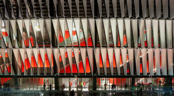 为了赋予体育场空间特征,以及确保它与城市和周围环境有着紧密的联系。立面采用了重复的扭曲ETFE元素,成为了新圣玛梅斯球场的特色。ETFE将通过世界上最先进的动态照明系统在夜间被照亮,从而在河口上创建一个城市地标,从内部投射出毕尔巴鄂的新形象。
