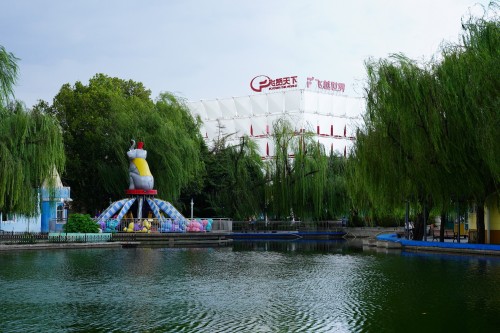 北京飞览天下飞行剧场,位于北京西部石景山游乐园,是一座模拟飞行游乐活动的剧场,于2019年完工。通过在巨型屏幕上投射高质量的中国大美河山及世界各地的壮观景色图像,为游客提供令人难以抗拒的沉浸式飞行体验。